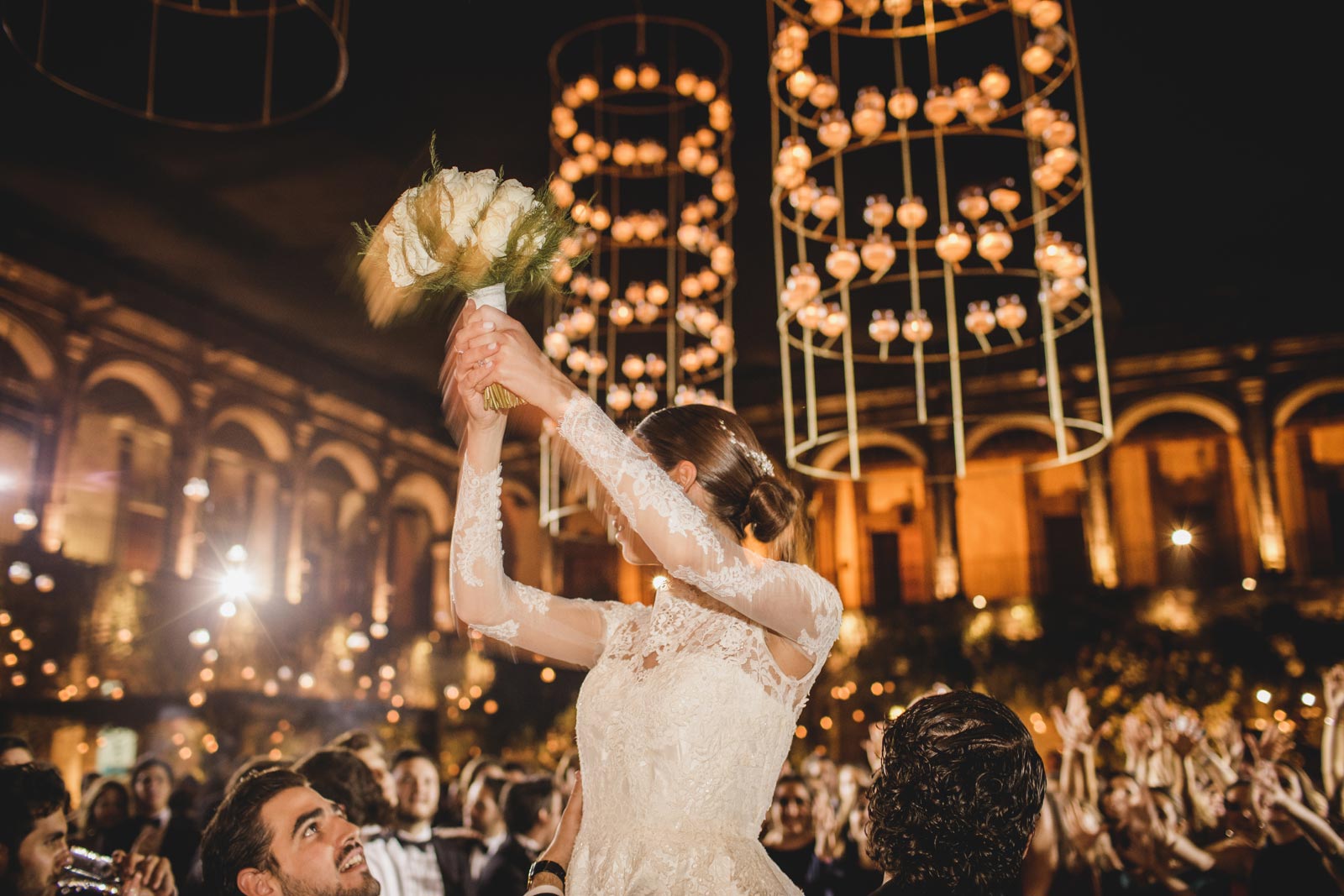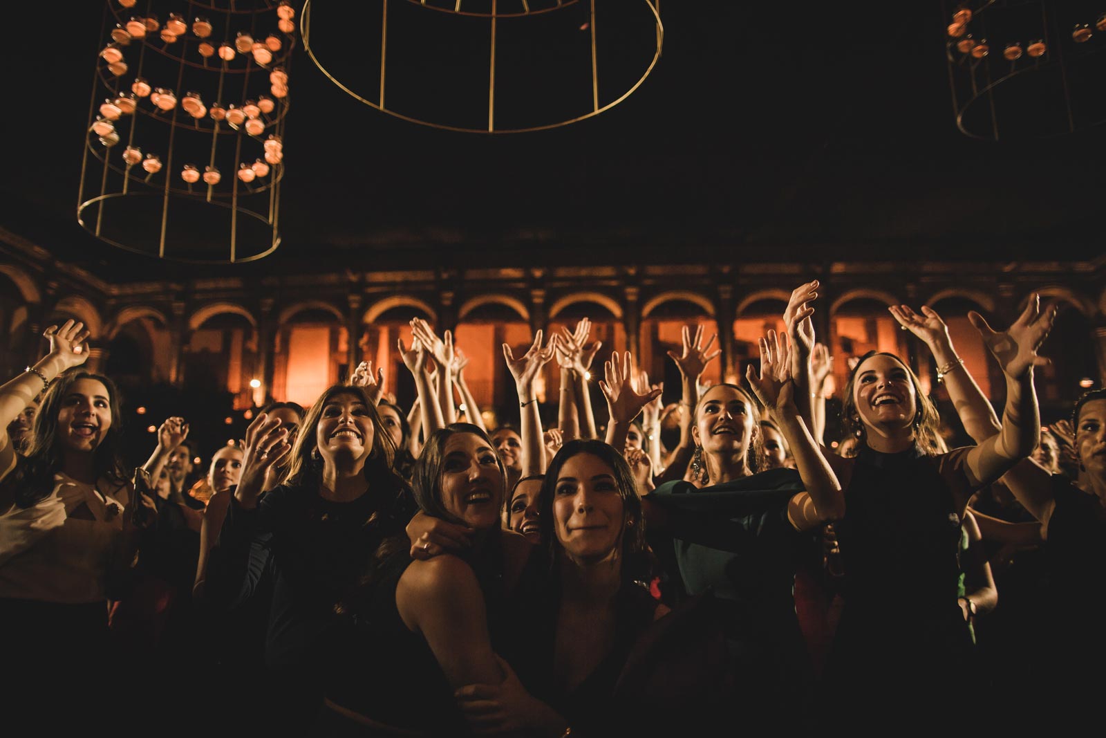 Then, it was on to the show-stopping reception at the Colegio de San Ignacio de Loyola Vizcaínas. The historic grandeur of the venue was the perfect launchpad for an unforgettable party. Guests danced under the stars in the majestic stone courtyard, and the atmosphere was simply phenomenal. It was a privilege to photograph a celebration of this magnitude!